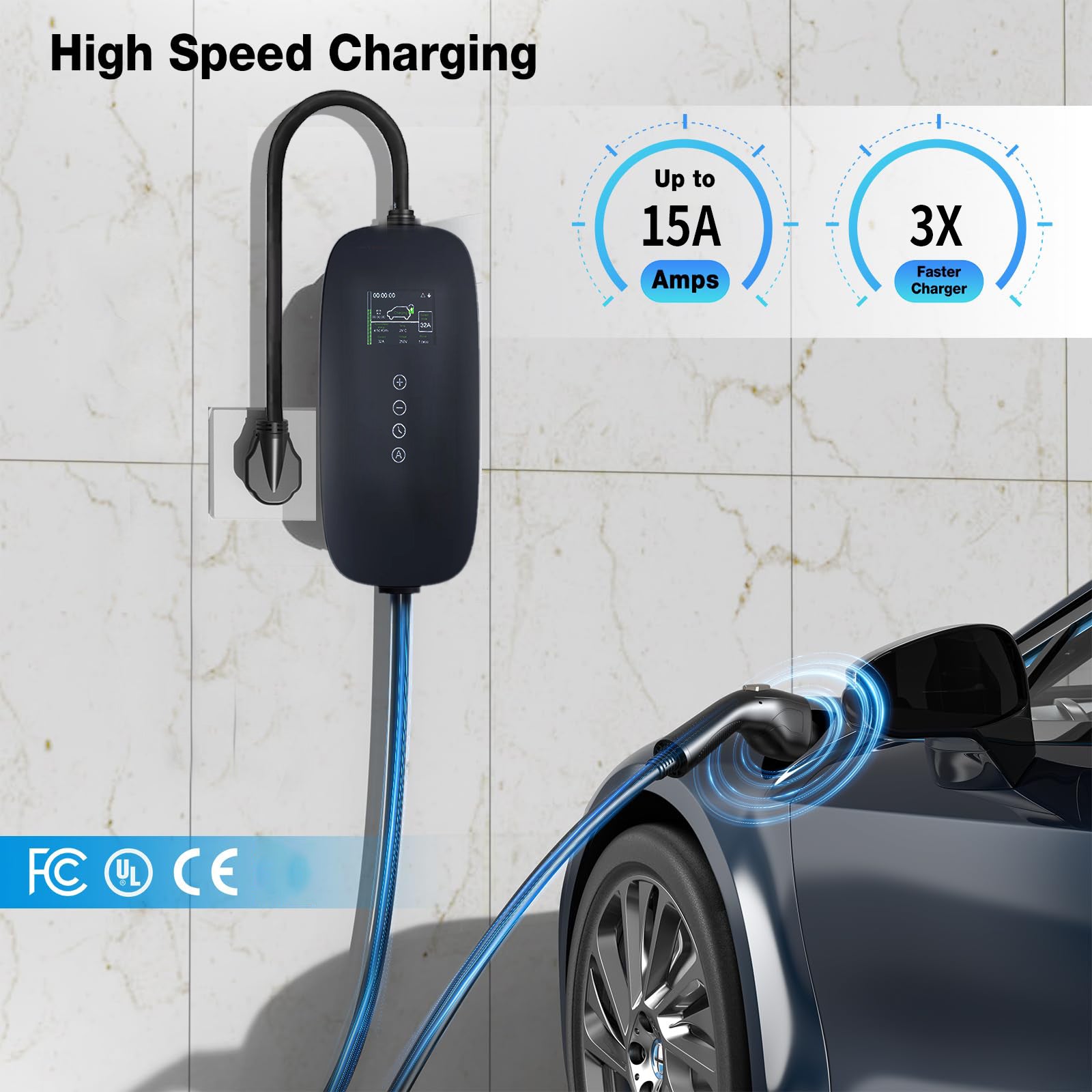- 15A strong current with 3.3KW(max) high power allows quick and efficient charging, plug and play.